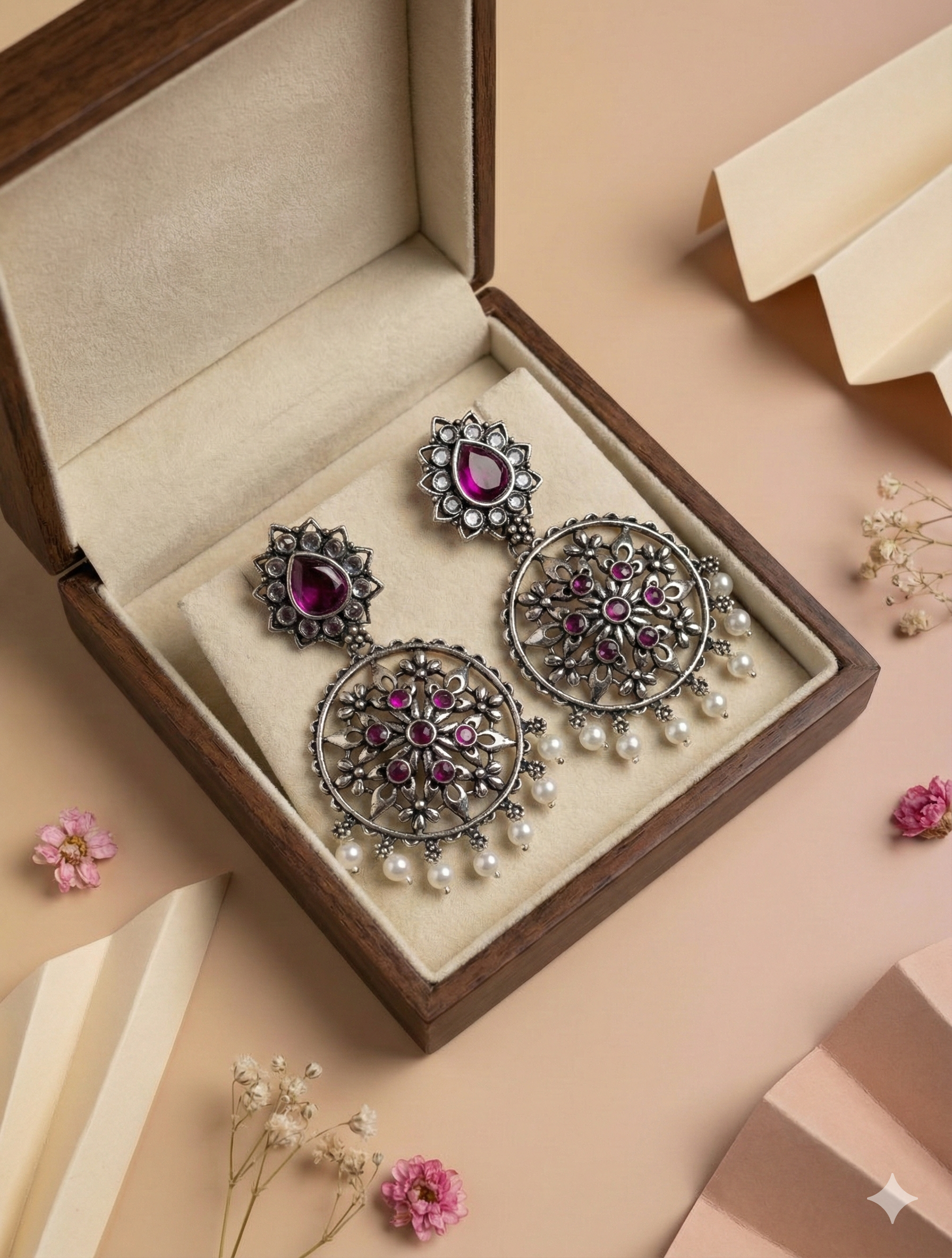 Drop Ring Oxidised Earring